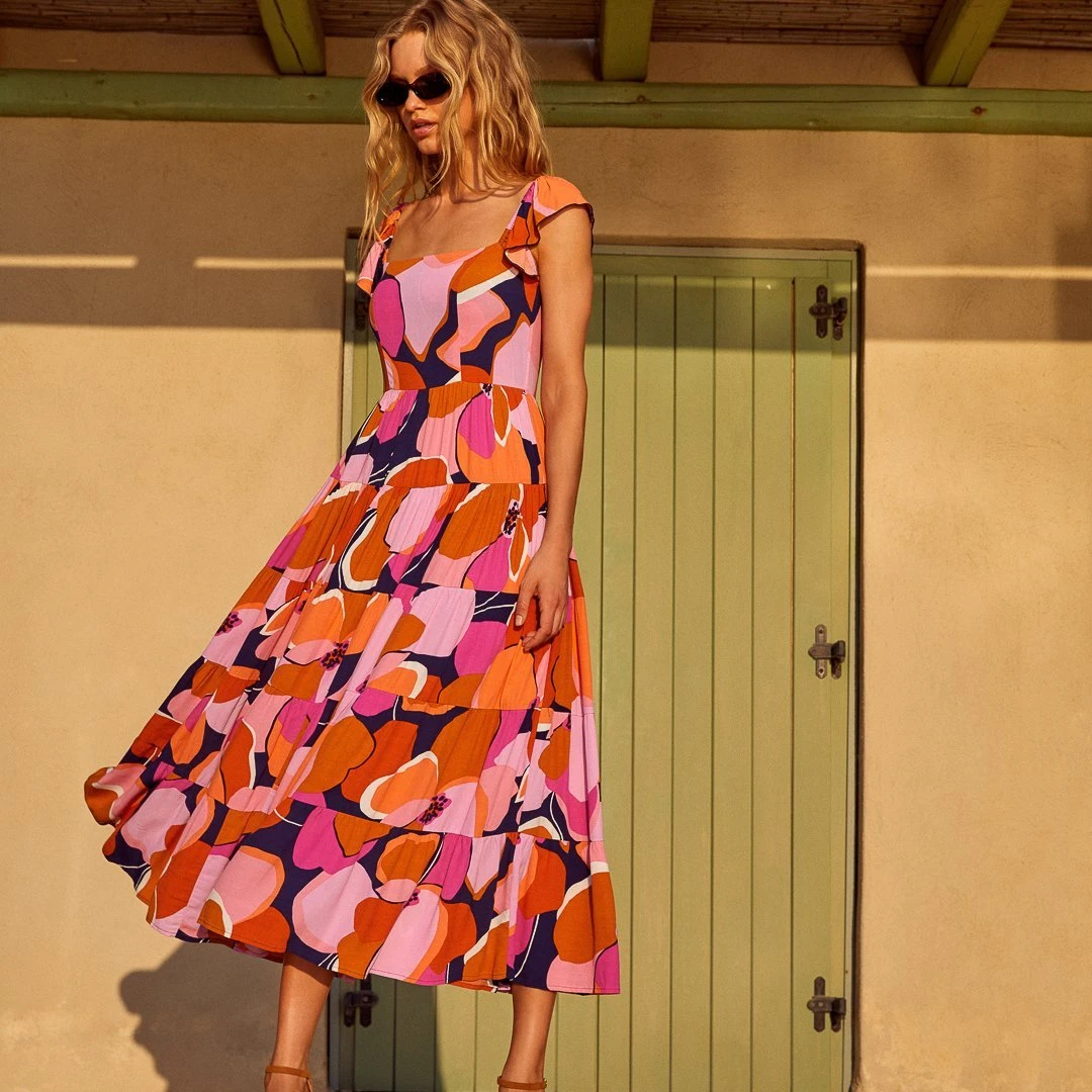 All roads lead to …a sunset drink on the rooftop ! Our Gabrielle Dress in Loulida takes you there thanks to its fun colourful print. This is sure to be on high rotation.