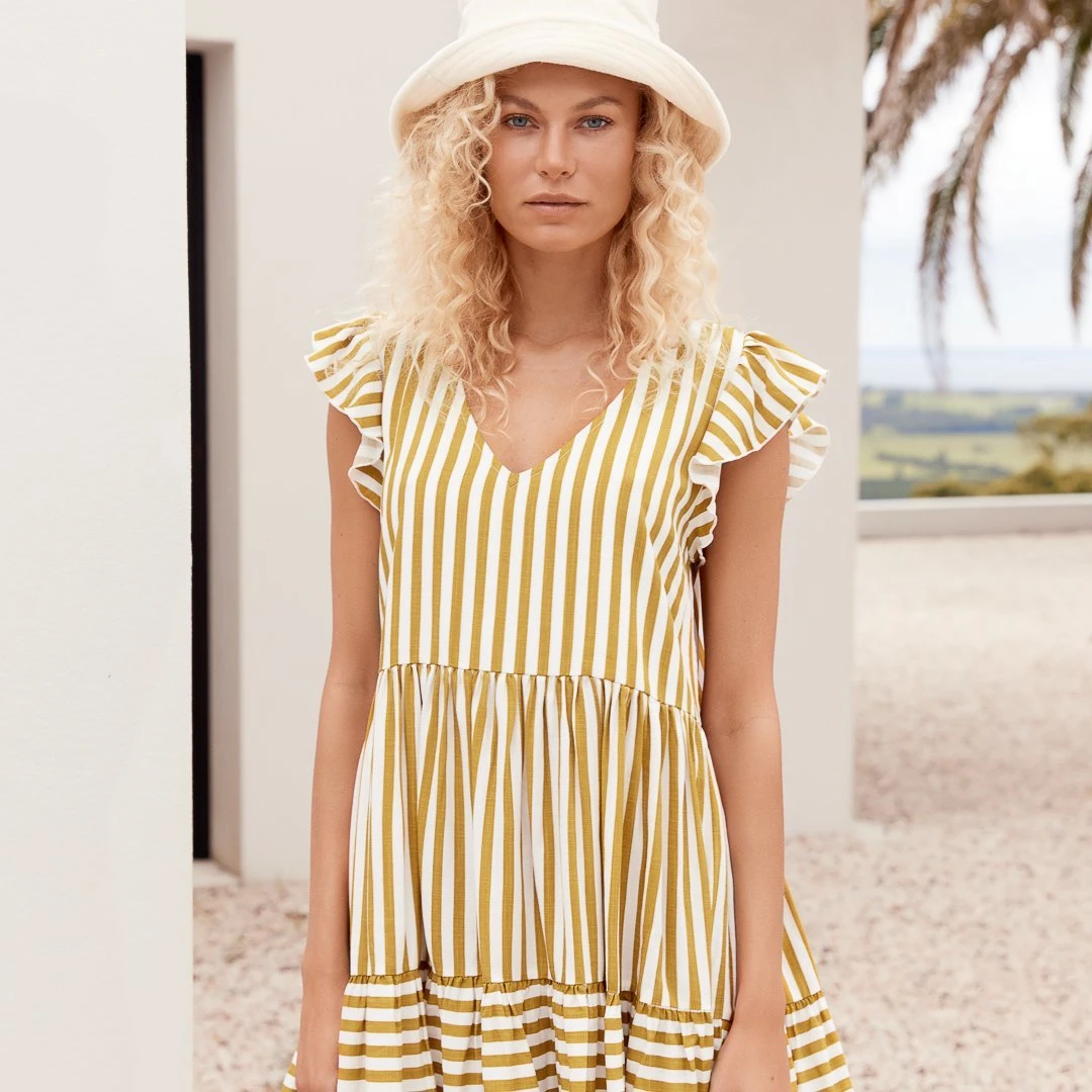 All dressed up and somewhere to go! Heidi doesn’t mind what you’re up to. She’s down for anything with her playful combo of frills and stripes.