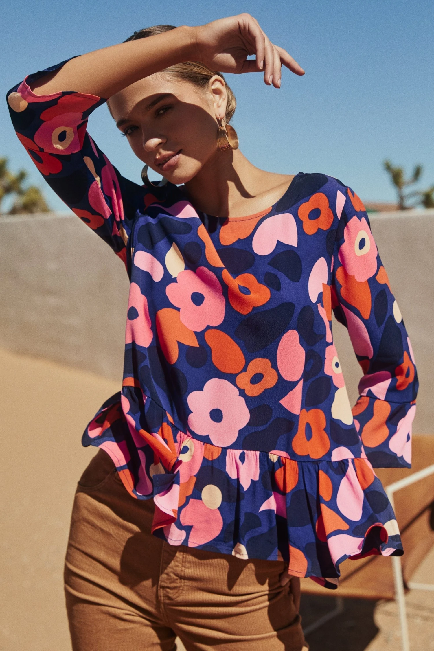 A colour palette inspired by Spanish blossoms and vineyards at dusk, the Winter Celeste Top In Juniper is sure to be on high rotation. Just add a pair of Zimi Flares.